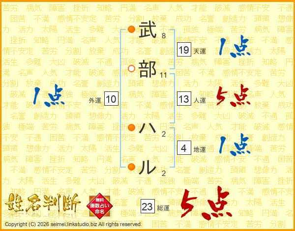 武部ハルさんの人運は13画の5点!