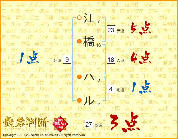 江橋ハルさんの総運は27画の3点!