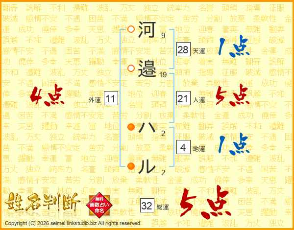 河邉ハルさんの総運は32画の5点!