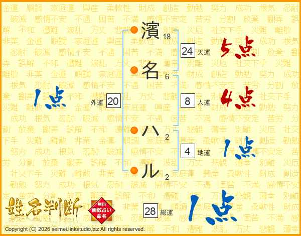 濱名ハルさんの総運は28画の1点!