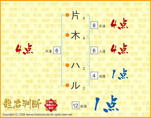 片木ハルさんの総運は12画の1点!