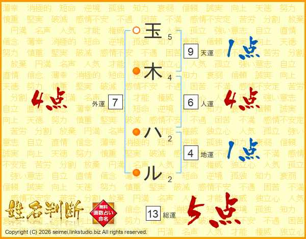 玉木ハルさんの総運は13画の5点!