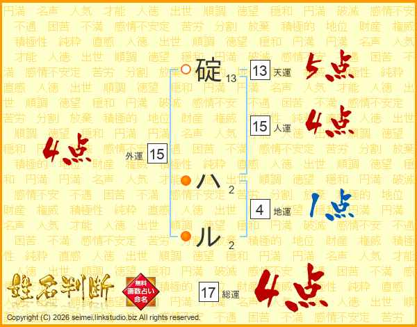 碇ハルさんの総運は17画の4点!