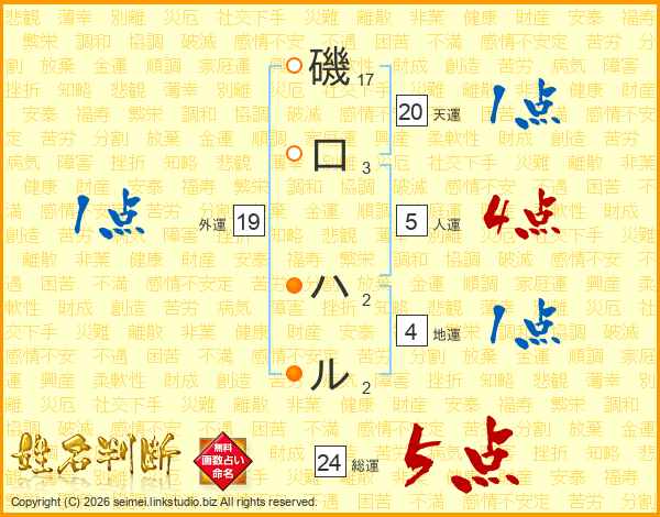 磯口ハルさんの総運は24画の5点!