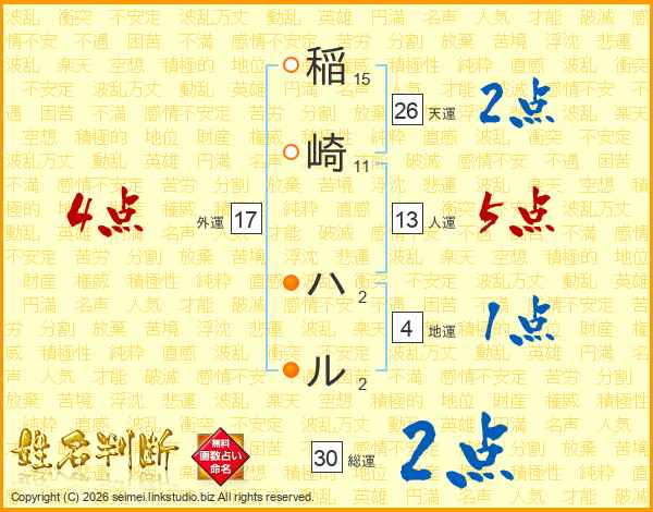 稲崎ハルさんの総運は30画の2点!