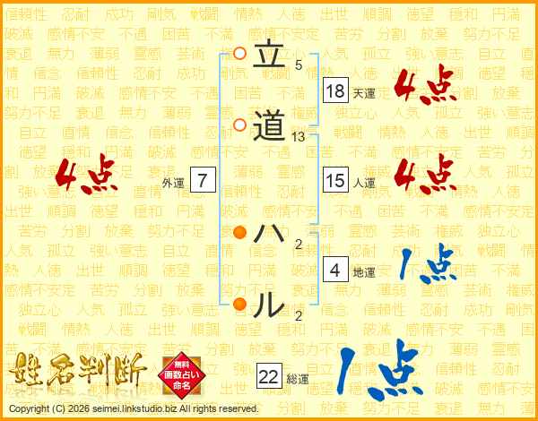 立道ハルさんの総運は22画の1点!