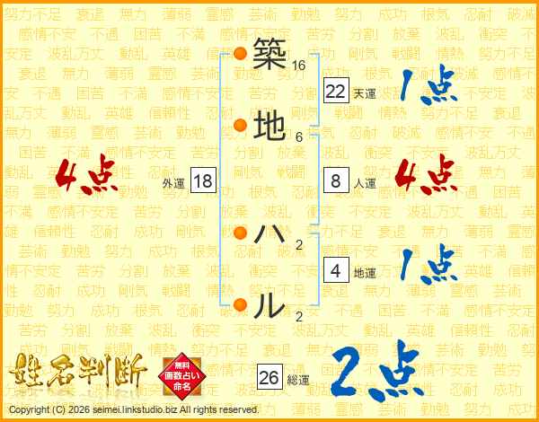 築地ハルさんの天運は22画の1点!