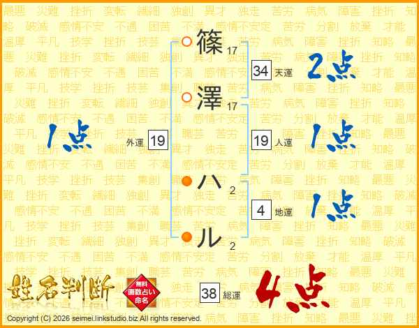 篠澤ハルさんの総運は38画の4点!