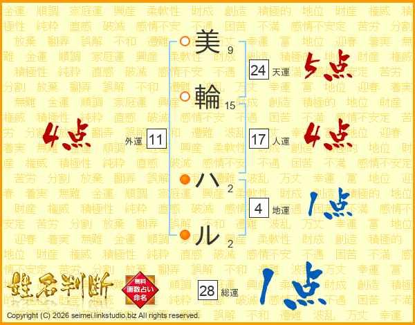 美輪ハルさんの外運は11画の4点!