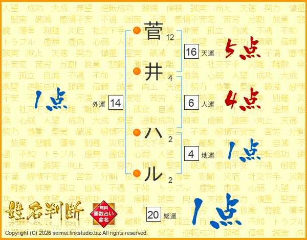 菅井ハルさんの総運は20画の1点!