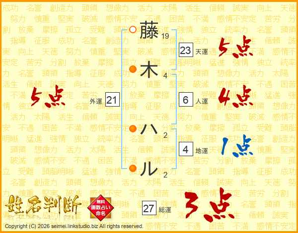 藤(19画)木(4画) ハ(2画)ル(2画)