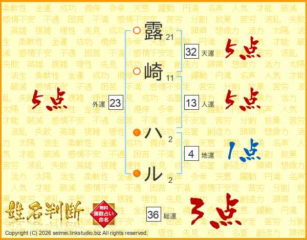 露(21画)崎(11画) ハ(2画)ル(2画)