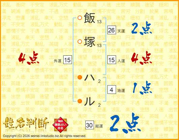 飯塚ハルさんの総運は30画の2点!