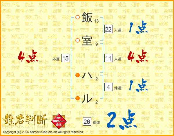 飯室ハルさんの総運は26画の2点!