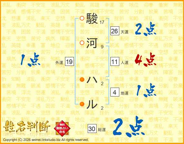 駿(17画)河(9画) ハ(2画)ル(2画)