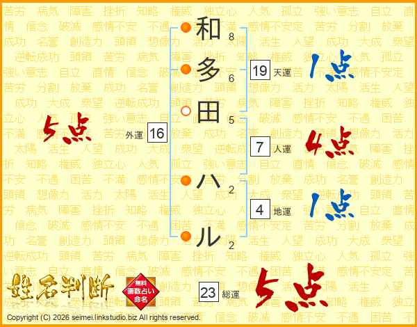 和多田ハルさんの外運は16画の5点!