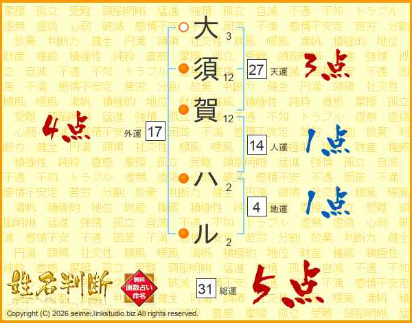 大須賀ハルさんの総運は31画の5点!