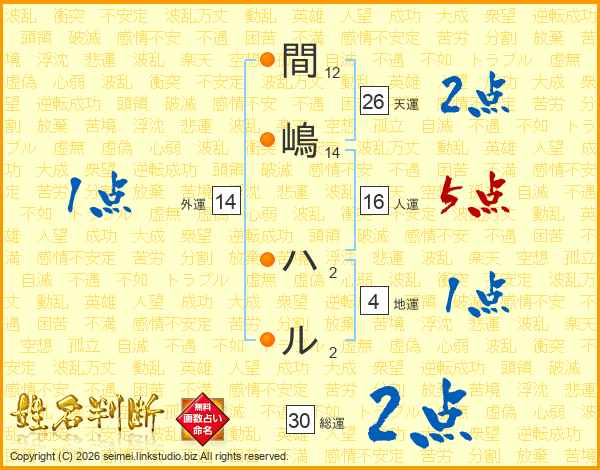間嶋ハルさんの外運は14画の1点!