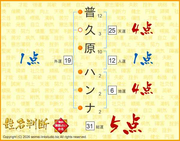普(12画)久(3画)原(10画) ハ(2画)ン(2画)ナ(2画)