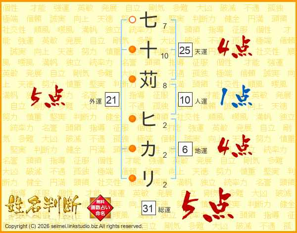 七十苅ヒカリさんの外運は21画の5点!