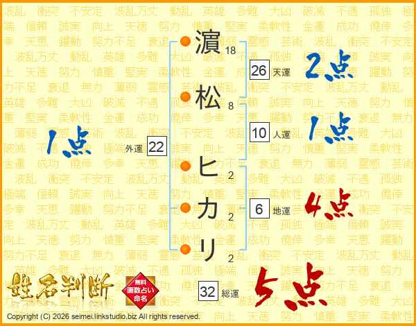 濵松ヒカリさんの総運は32画の5点!