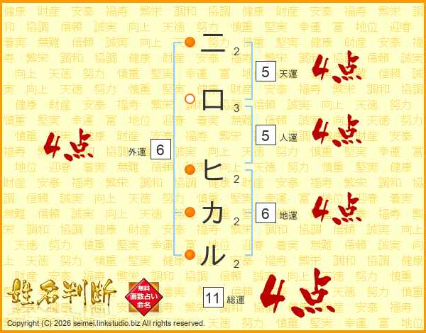 二口ヒカルさんの総運は11画の4点!