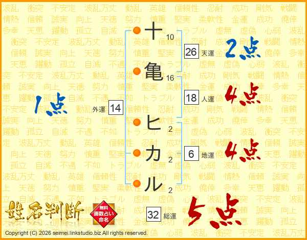 十亀ヒカルさんの天運は26画の2点!