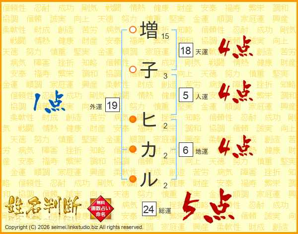 増子ヒカルさんの総運は24画の5点!