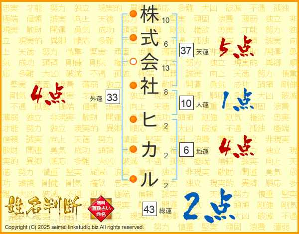 株(10画)式(6画)会(13画)社(8画) ヒ(2画)カ(2画)ル(2画)