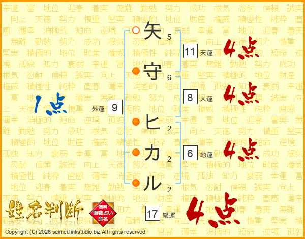 矢守ヒカルさんの天運は11画の4点!