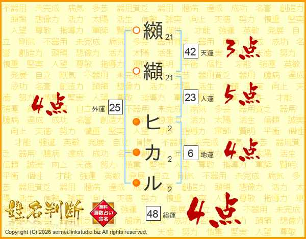 纐纈ヒカルさんの総運は48画の4点!
