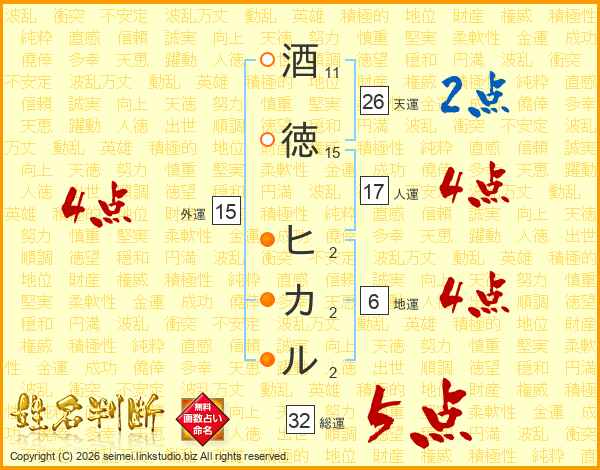 酒(11画)徳(15画) ヒ(2画)カ(2画)ル(2画)