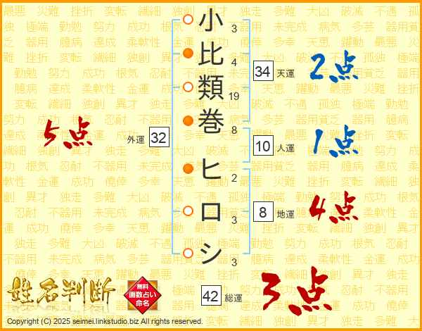 小(3画)比(4画)類(19画)巻(8画) ヒ(2画)ロ(3画)シ(3画)