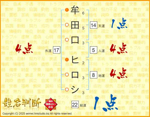 牟田口ヒロシさんの総運は22画の1点!