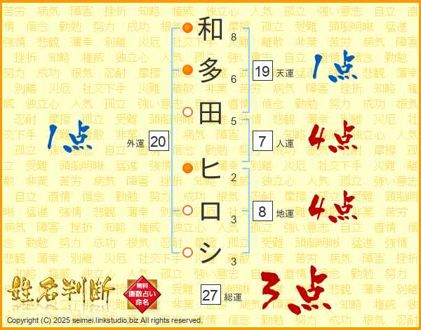 和多田ヒロシさんの天運は19画の1点!
