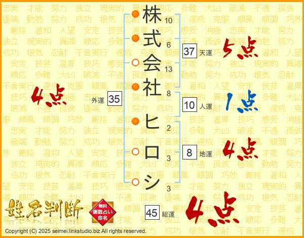 株(10画)式(6画)会(13画)社(8画) ヒ(2画)ロ(3画)シ(3画)