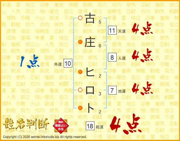 古(5画)庄(6画) ヒ(2画)ロ(3画)ト(2画)