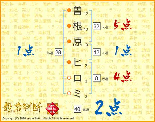 曽根原ヒロミさんの天運は32画の5点!