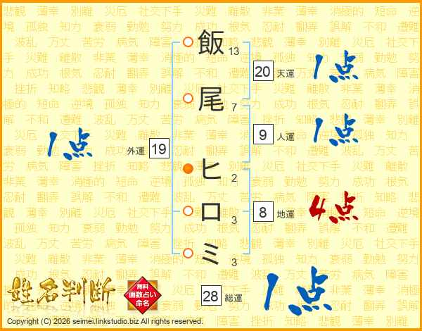 飯尾ヒロミさんの総運は28画の1点!