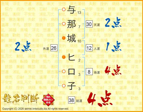 与那城ヒロ子さんの総運は38画の4点!