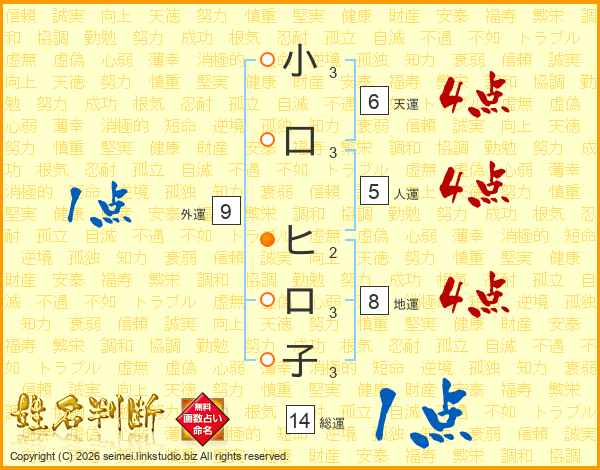 小口ヒロ子さんの総運は14画の1点!