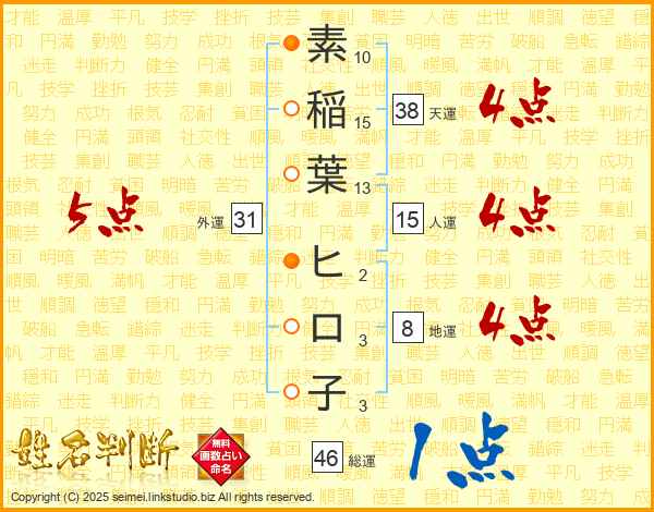 素稲葉ヒロ子さんの外運は31画の5点!