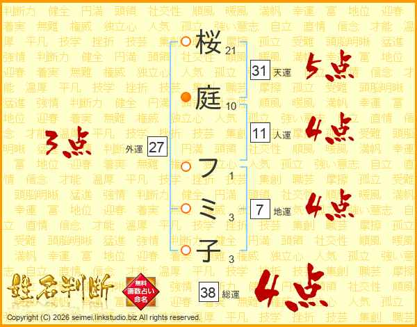 桜庭フミ子さんの総運は38画の4点!