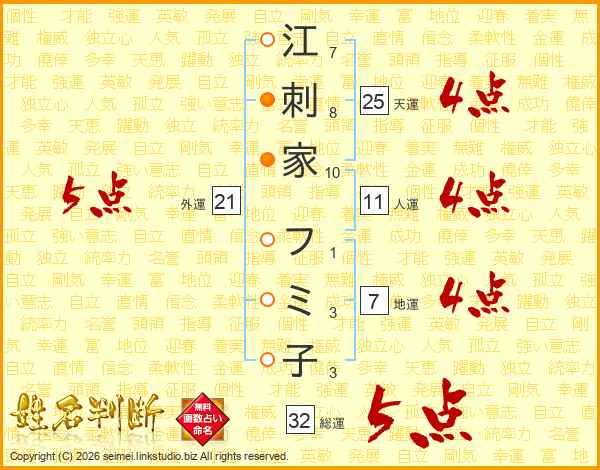 江刺家フミ子さんの総運は32画の5点!