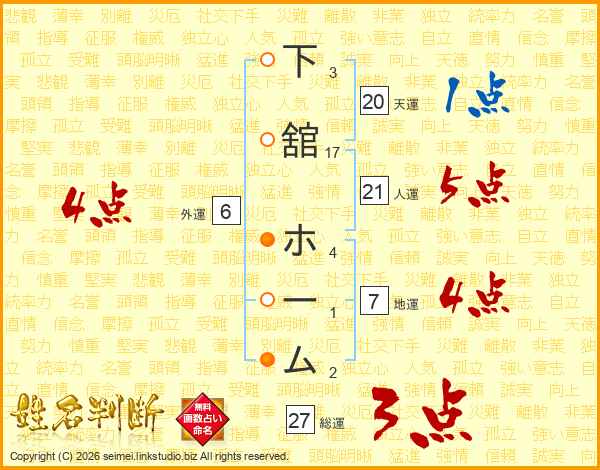 下(3画)舘(17画) ホ(4画)ー(1画)ム(2画)