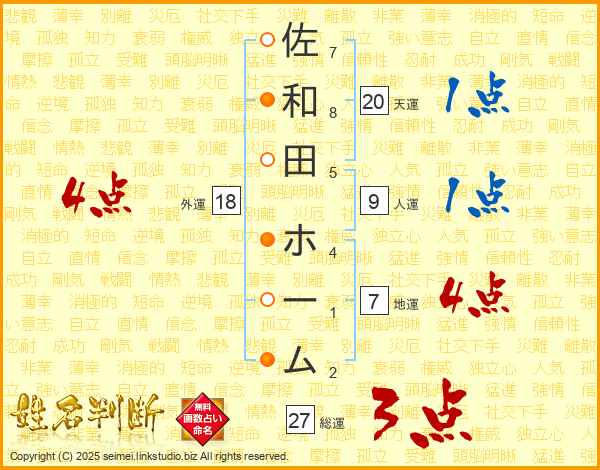佐(7画)和(8画)田(5画) ホ(4画)ー(1画)ム(2画)