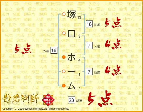 塚口ホームさんの天運は16画の5点!
