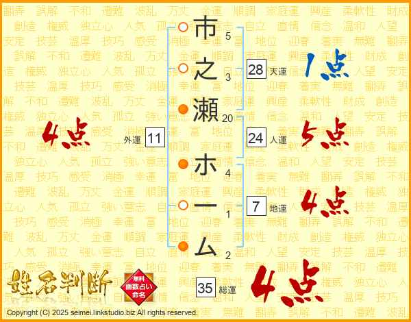 市之瀬ホームさんの人運は24画の5点!