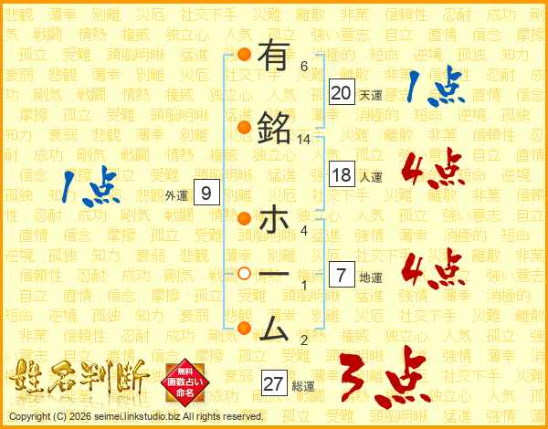 有銘ホームさんの人運は18画の4点!
