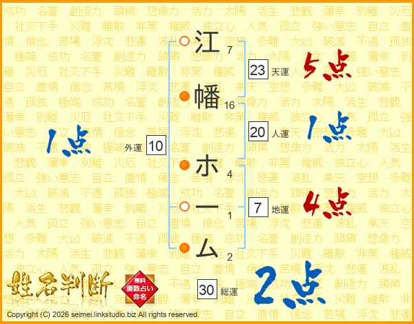 江幡ホームさんの人運は20画の1点!
